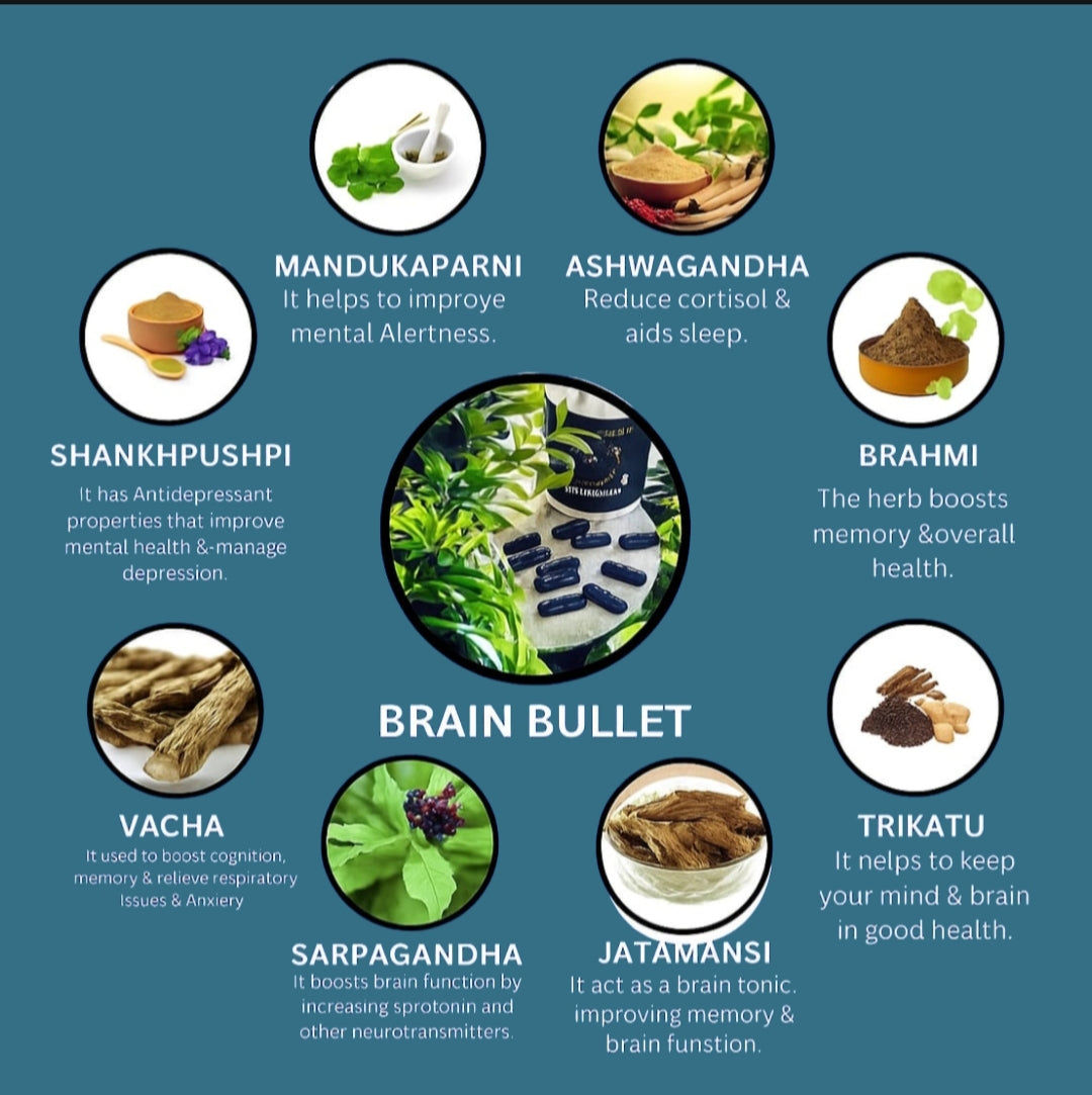 Unlock your mind's full potential with Brain Bullet Capsules, a premium herbal supplement designed to enhance brain health and cognitive function. Formulated with a blend of natural ingredients, these capsules support memory, focus, and overall mental clarity, making them an ideal choice for students, professionals, and anyone looking to boost their cognitive performance.