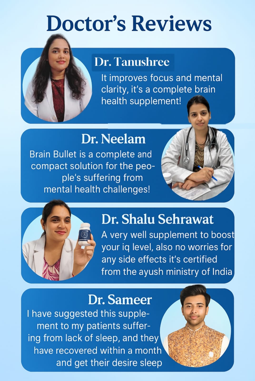 “I’ve tried everything from coffee to focus apps, but Brain Bullet genuinely made a difference. Within a week, my mental fog reduced and I could sit for 3+ hours without losing concentration. And it's organic, so I don’t feel guilty using it daily.”